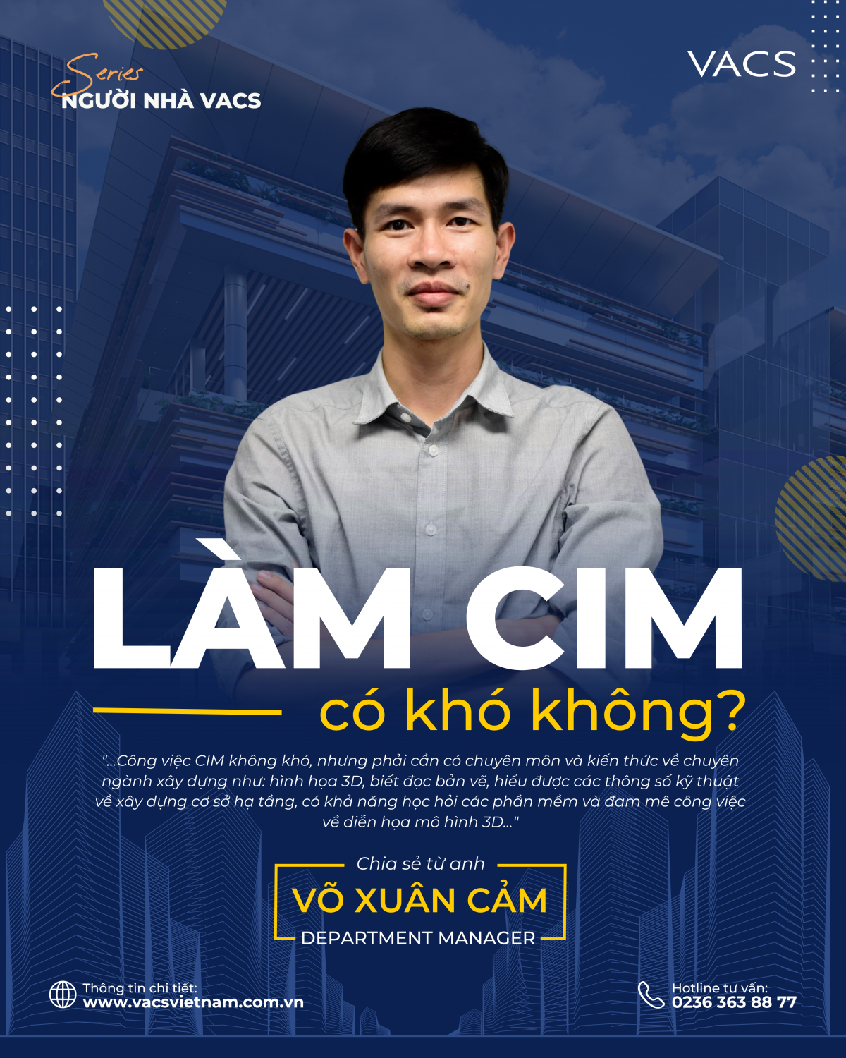 Theo anh Cảm, để làm việc về công việc CIM không khó, nhưng phải cần có chuyên môn và kiến thức về chuyên ngành xây dựng. Có kiến thức về hình họa 3D, biết đọc bản vẽ và hiểu được các thông số kỹ thuật về xây dựng cơ sở hạ tầng. Có khả năng học hỏi các phần mềm và đam mê công việc về diễn họa mô hình 3D. Phải biết tìm tòi, học hỏi, nghiên cứu các phần mềm mới về diễn họa mô hình 3D để phục vụ cho công việc tốt nhất.