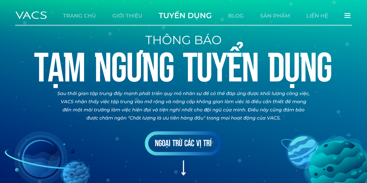 VACS hiểu rằng có thể bạn đang quan tâm đến cơ hội làm việc tại VACS. Hãy luôn theo dõi website và fanpage của VACS để cập nhật thông tin mới nhất về tuyển dụng sẽ trở lại vào tháng 11/2023 này.